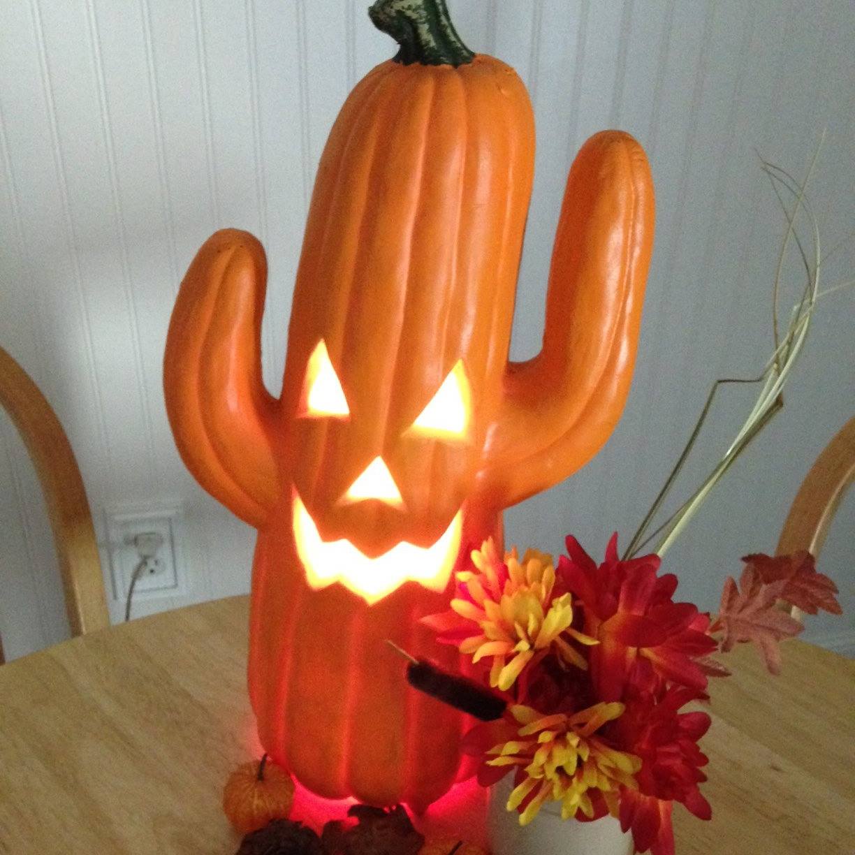 Where we currently live, I was surprised to get a few knocks on my door the first year. I had not signed up to participate in giving out treats. I scrambled and came up with small bags of chips and other items. My new neighbor knocked on my door and handed me her huge bowl of candy! She heard people knocking on my door, but not on hers! It seems the office put the wrong apartment number on the map! Mystery solved! I’m all signed up for tonight’s visitors. Since the hallways are inside and climate controlled, I am once again giving out chocolate – Reese’s Peanut Butter Pumpkins. My Vegas desert cactus Jack o’Lantern will be lit up outside my door (see picture above).