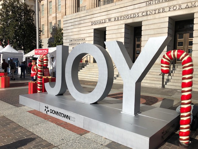 DC’s Downtown Holiday Market It was a beautiful downtown DC day so we decided to visit the holiday market. Smooth walking on an even sidewalk. Music playing from the stage with chairs to rest and listen. Vendors lined both sides of the sidewalk. A small friendly group of vendors with very nice merchandise. Karen came home with a warm hat for windy winter days and I came home with the perfect scarf to keep my neck warm when it gets wintery here in the DC area.