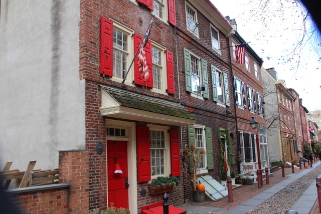 Besides the Christmas Village, we took a couple of side trips to Independence Hall and the Liberty Bell, Betsy Ross House, and Elfreth Street. There is definitely some beautiful architecture in Philadelphia. Love old buildings! Inside the Liberty Bell hall, we even spied some Carnival Glass! A Marigold Liberty Bell Bank, which I had but gave to my great-nephew and a commemorative convention plate, which I sold with many other Carnival Glass commemoratives in an auction many years ago. I also had a large Liberty Bell Cookie Jar. (Check out my book on Carnival Glass Commemoratives!) Ever played Monopoly? Take a ride on the Reading RR? This is the place. Some of the colder venues, Karen braved the cold and winds for the photo ops while I stayed warm or rested.