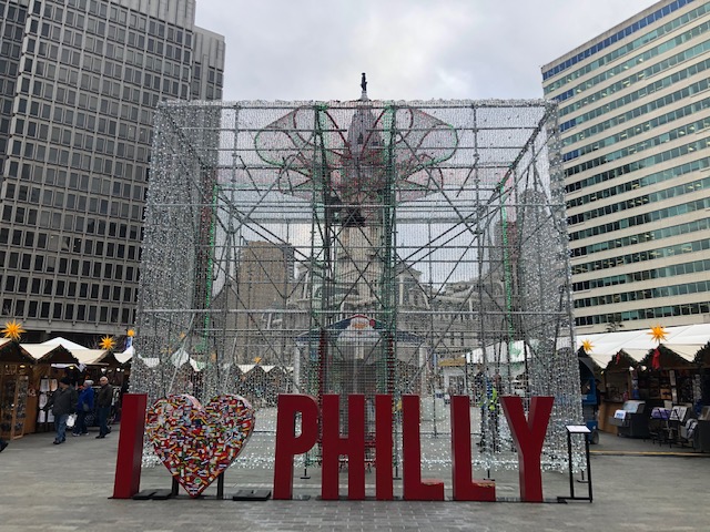 With the winter Polar Coaster holding off, we decided to drive to Philadelphia with the express purposes of checking out the new Four Seasons Philadelphia hotel and the Philadelphia Christmas Village. The weather was overcast and chilly with rain coming as we left the market. There was fog in the morning. While we only saw a little bit of the area, we spent time shopping at the Christmas Village. “Philadelphia Christmas Village will once again bring the charm of an authentic German Christmas market to Center City Philadelphia. It will be officially opened by the original Christkind from Nuremberg, Germany!”*