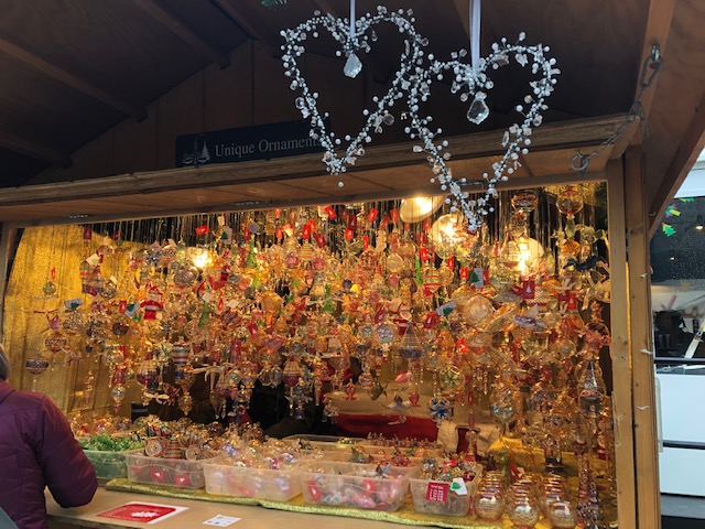 Karen and I have visited many Christkindlemarkts in Germany, including the wonderfully fabulous Nuremberg. We also visited the market in Baltimore. We enjoyed our visit to Philadelphia Christmas Village. We had hot cocoa, brats with sauerkraut, soft pretzels with a cheesy beer dip and mulled wine. We met Carl, from Germany at his booth. We’ve apparently seen his wares at previous markets, visited in Germany. Carl was rubbing his hands, and I asked him if his hand were cold. He said no, but I pulled out one of my hand warmers from my glove and gave it to him anyway. Just like the vendor in Germany that I gave one to a couple of years ago, Carl was excited and wanted to know where he could get some. I ended up giving him my other hand warmer before we left. Such a nice man! We spent some time chatting with him and was sad to hear that he would not be returning next year, due to slow business and being away from family and Germany at Christmastime each year for the past 20+ years. We went on our way and shopped other vendors. We have so many Christmas decorations already, but we, of course, added more to the collection!