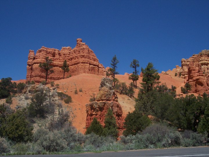 When we lived in Las Vegas, we traveled around the area to many parks and beautiful sites. Here’s a few pictures from beautiful Bryce Canyon that were taken by me in May, 2010. It took us several attempts to get there but we finally were able to make the trip. Don’t let the blue skies and wispy clouds fool you! It was very windy and cold that day! If you haven’t ever seen what the wind can do, check out the photos when Ed and took a road trip to Bryce Canyon. Still some snow around. And check out the ice on the farm equipment! Brrr!