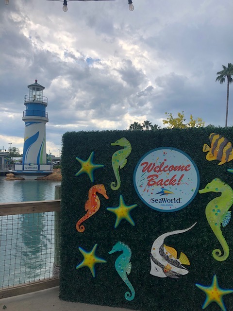 Just before the pandemic initiated a quarantine on everyone and basically shut the entire world down to any travel, Karen and I purchased annual passes to Sea World. We had never been to Sea World Orlando and the price was right. We signed up for the Silver annual pass and a couple months later received an email complimentarily upgrading us to Gold level. Finally, we were able to visit Sea World recently. The weather was sunny, with only a very brief sprinkle just as we were leaving. After our adventure at Bok Gardens the day before, I decided to rent a scooter and was very glad I did. Cutest things – they had a canopy to shield from the rain and sun! We managed to see quite a bit of the park. Most rides weren’t operating, but exhibitions were open. And the Orca show was open, with social distancing very prominent. Many of the vendors were not open. The crowd was controlled by a reservation system. It definitely got busier by mid-afternoon, making social distancing more tricky. But as a whole, I thought everyone was very respectful of each other’s space. Wearing masks was mandatory for employees and guests alike. There are a few areas where you can remove your mask, as long as you maintain a social distance.