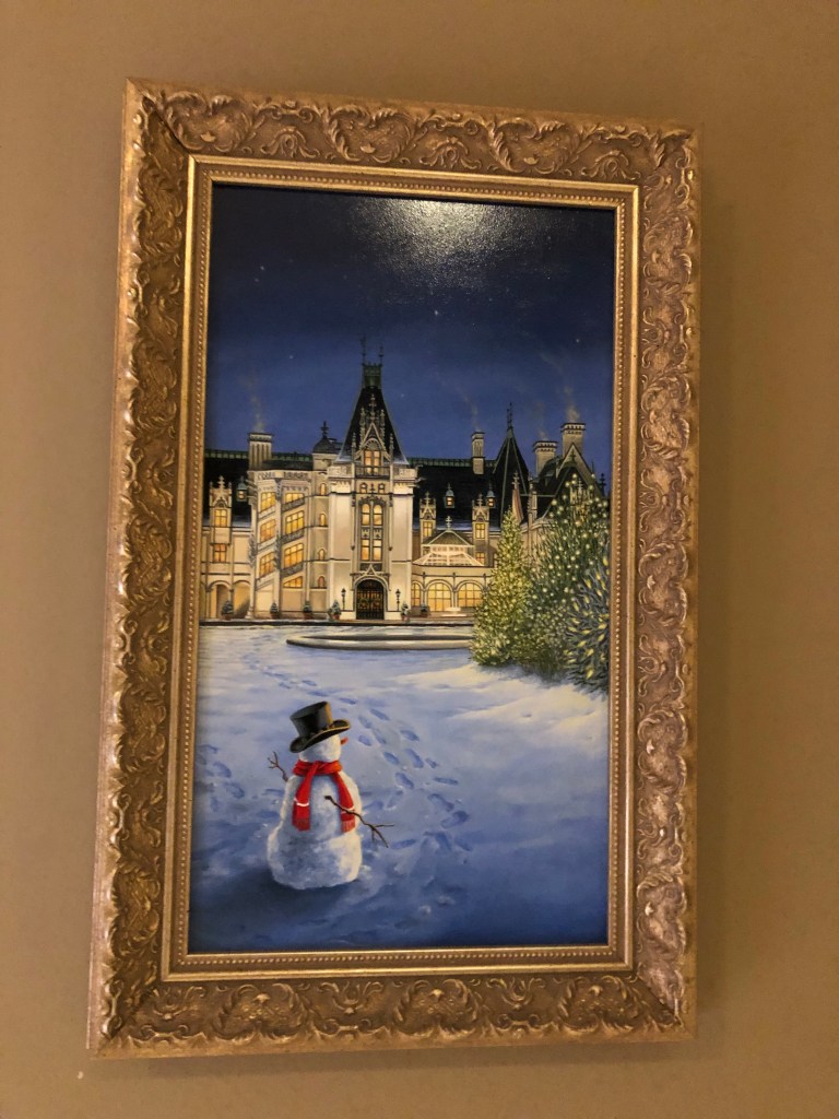 The shops on the estate were very busy and admittance was controlled at the door. There was also a gift shop at the main gate to the estate. We purchased a cute snowman ornament with a Biltmore scene to add to our travel ornament collection.