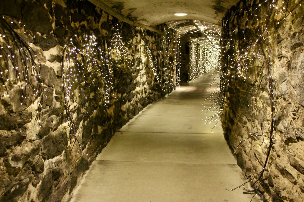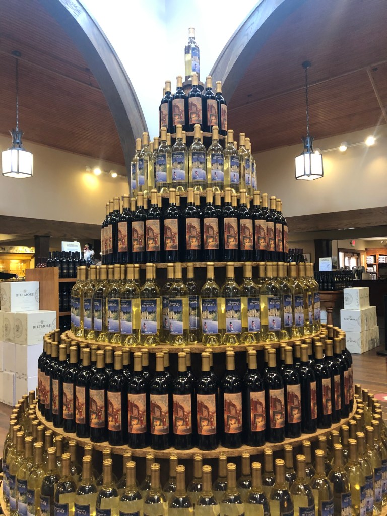 Karen participated in a wine tasting. Biltmore Estates has vineyards in California so many of the wines are produced there. She came home with a few bottles of her favorites. The Winery is located in what used to be the cattle barn. We walked the underground tunnel to get out of the rain and visited the Wine Shop.