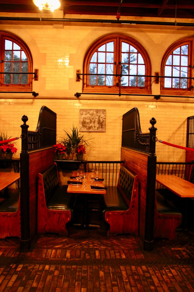 The estate shuttle was not in operation (another disappointment) but we walked through Antler Hill Village and enjoyed a few meals close by at Cedric’s Tavern and the Bistro as well as breakfast in the hotel’s upstairs restaurant. There was also a small coffee shop in the lobby selling pastries and sandwiches. Our first meal was in The Stable Cafe. Yes, originally it was a very nicely appointed stable for the estate’s horses and carriages. We actually had a table in a stall. Our expensive meal was one-note and not very appetizing. Our server noticed our disappointment and sent a manager over. The manager apologized and did the right thing.