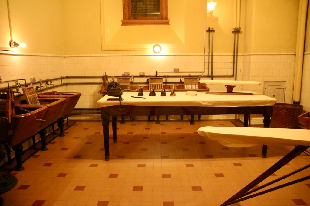 The Biltmore Estate is not really handicap accessible on all levels. There is an original operating elevator (one of two) that took us to the second floor but no further up or down to the basement. A side viewing room is available for those who cannot navigate the stairs to the third floor. There is a continuous loop video showing what you would see if you were able to walk up the steps. It also showed pictures and information about the basement level. I was able to descend to the basement and tour that level. Karen carried my rollator walker down the stairs for me! People were very patient with me as I descended and ascended the stairs at the beginning and end. I’m glad I went down to see the kitchens, floral area, gym, pool, bowling alley, laundry and other rooms. It almost reminded me of Downton Abbey. I toured the property and village using my rollator walker. A bit tricky in Biltmore Village due to the disrepair of the sidewalks, but I managed with Karen’s help.