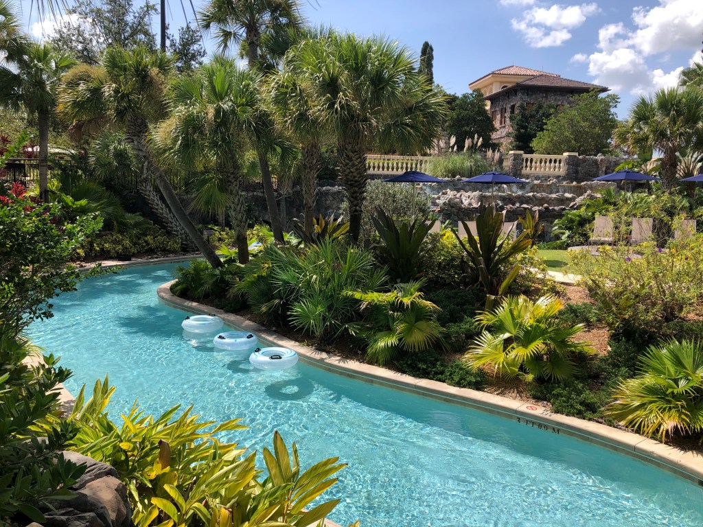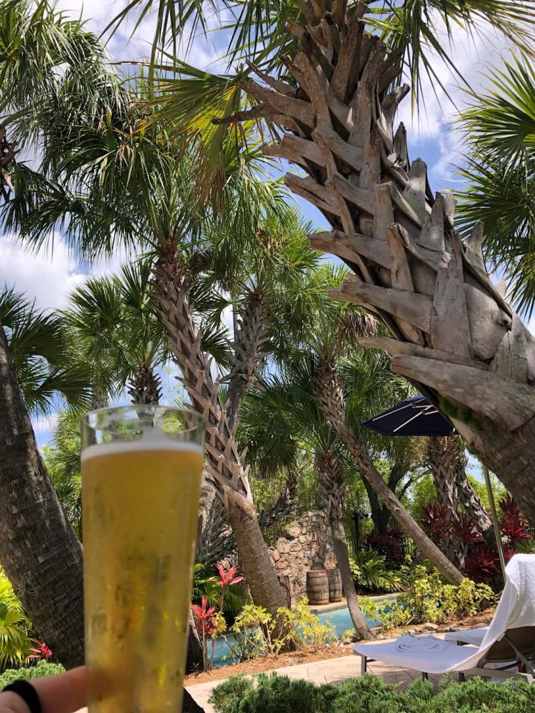 Four Seasons Orlando indoor fireworks in lobbyBird of Paradise – beautiful!Florida Sunshine beeer at the Lazy RiverFour Seasons Orlando Lazy RiverFlorida Sunshine beer and lunch at PBG