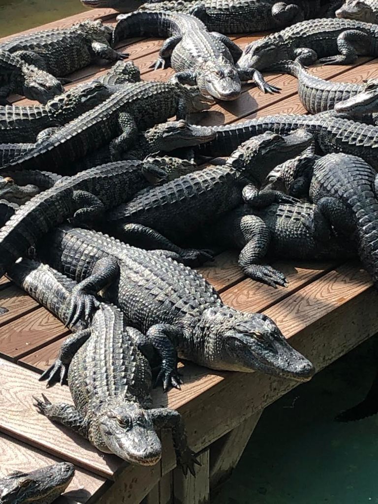 On Tuesday we enjoyed lunch at Miller’s, a cabana and pool time at their timeshare after a morning at Gatorland – One of my nephew’s favorite local attractions. Keith, Karen and Mason had fun feeding the alligators as they jumped out of the water for food. While at Gatorland, Karen and Missy enjoyed the zip line. A beautiful sunset ended an amazing day.