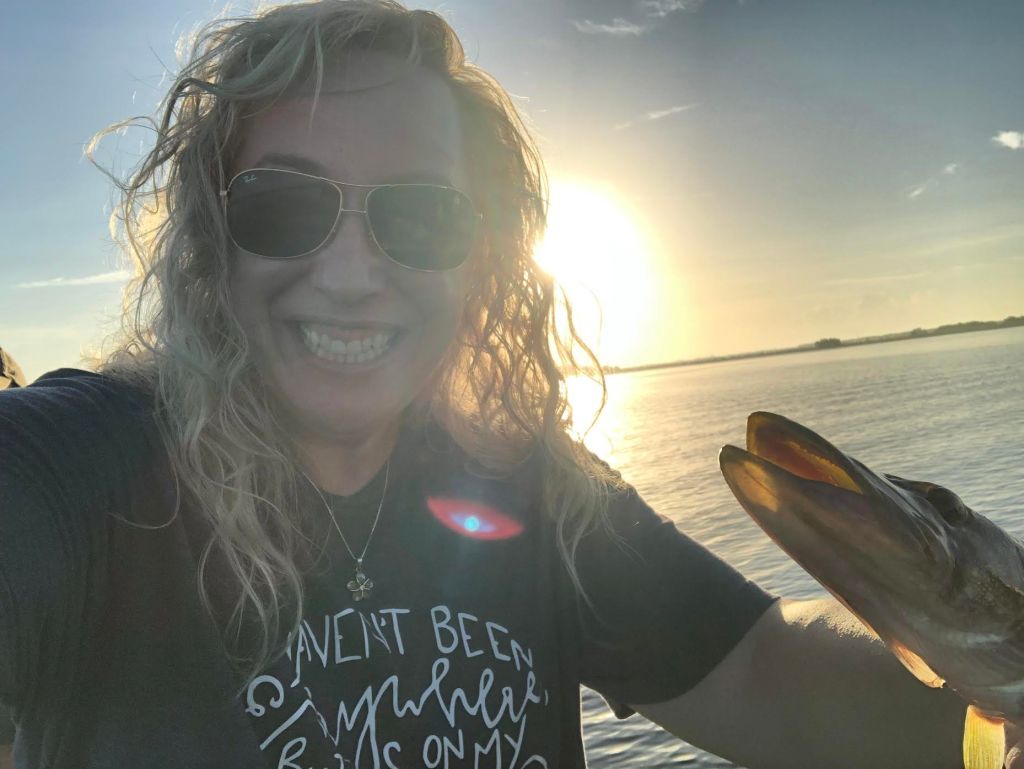 Early morning fishing trip – and she caught one!Mason touching a fish!Who took a bite?