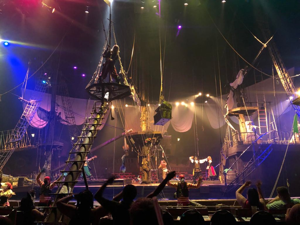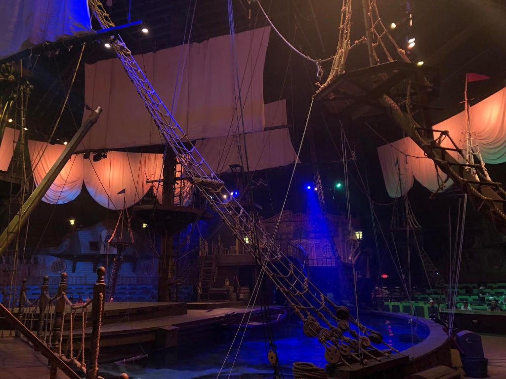 On Wednesday, Karen, her cousin and his 10-year old son went bass fishing on Lake Toho in the early morning.. Naps for us; lazy river for the visitors. Dinner at the Pirate Adventure show.