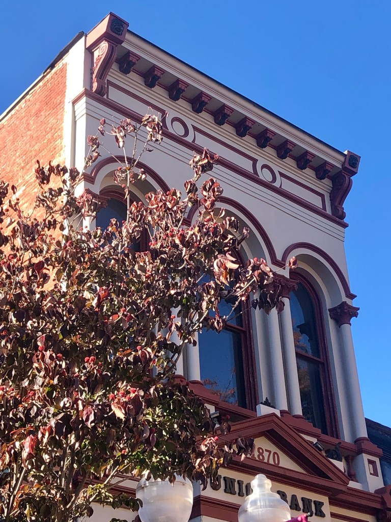 Winchester is about 1-1/2 hours away from our current location. Toll roads or by ways? We chose the by-ways, added a few minutes to the comuute but saved $$ on the tolls and were rewarded with beautiful views along the way. We arrived in Winchester at lunch time and hungry. The diner we thought we were going to eat at, ended up not impressing us so we drove to Loudoin Street area and attempted to find street parking nearby. Unsure if the handicapped parking was no charge – there was a handicap parking sign but no pay parking meter, we asked a couple of people but they did not know either. So, Karen moved the car while I waited at the Water Stree Kitchen for lunch. We sat outside and enjoyed the sunshine. Our server was great and we enjoyed our meal. Not the cheapest lunch, but it didn’t matter. We were eating outside in a place we wanted to visit, on a sunny November day in Northern Virginia!