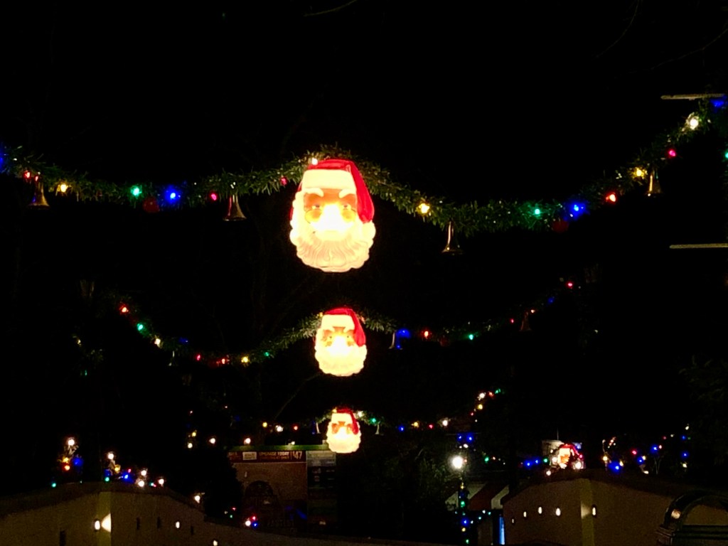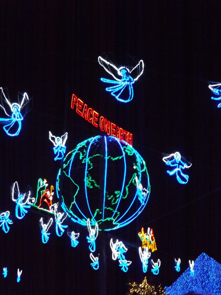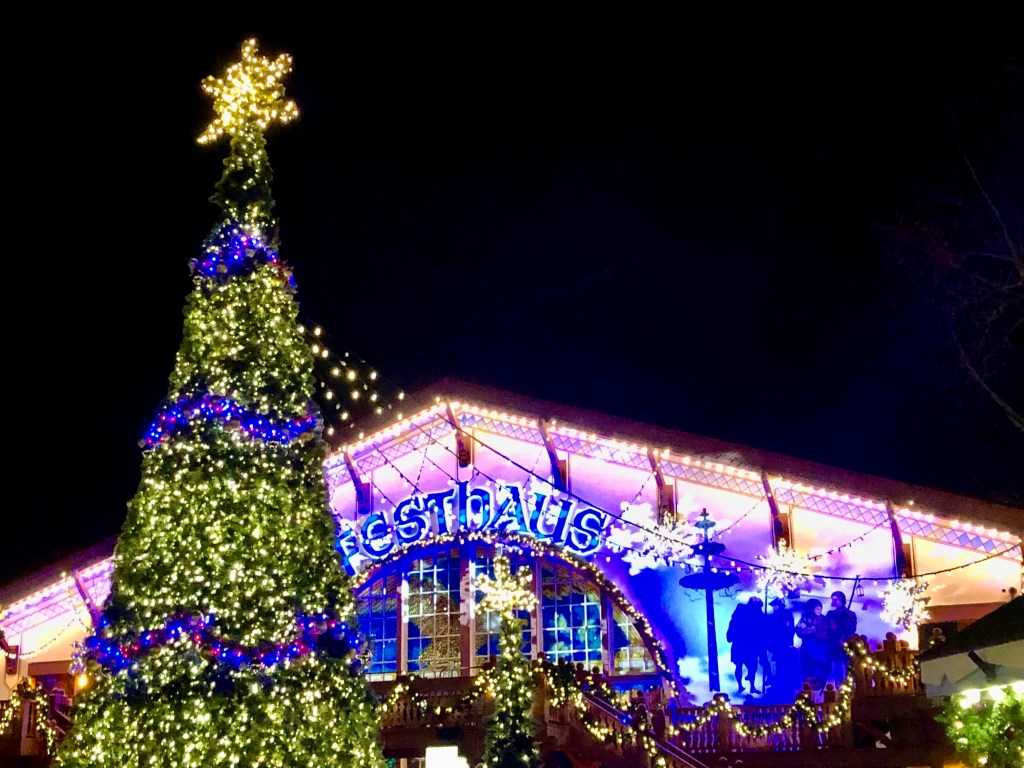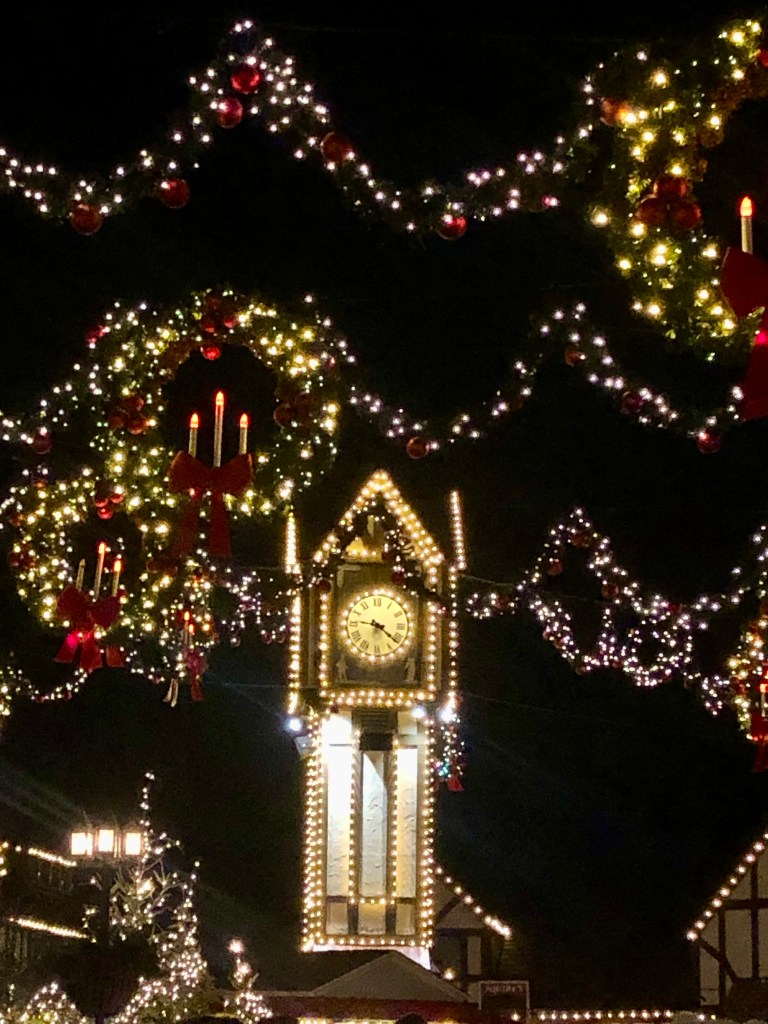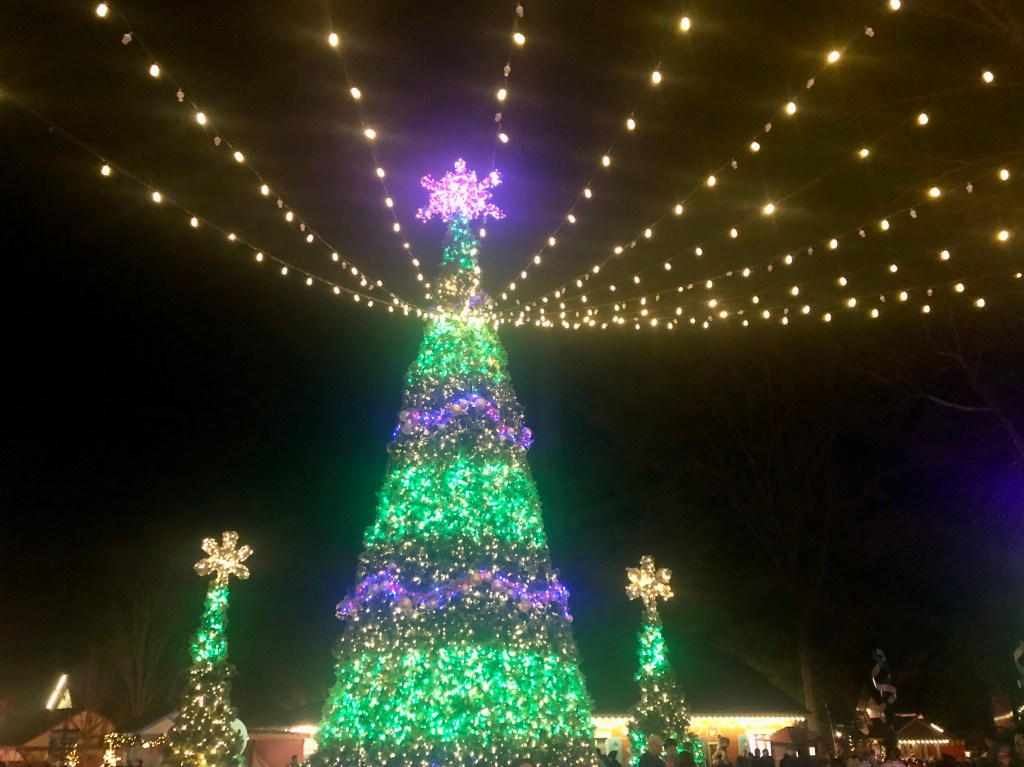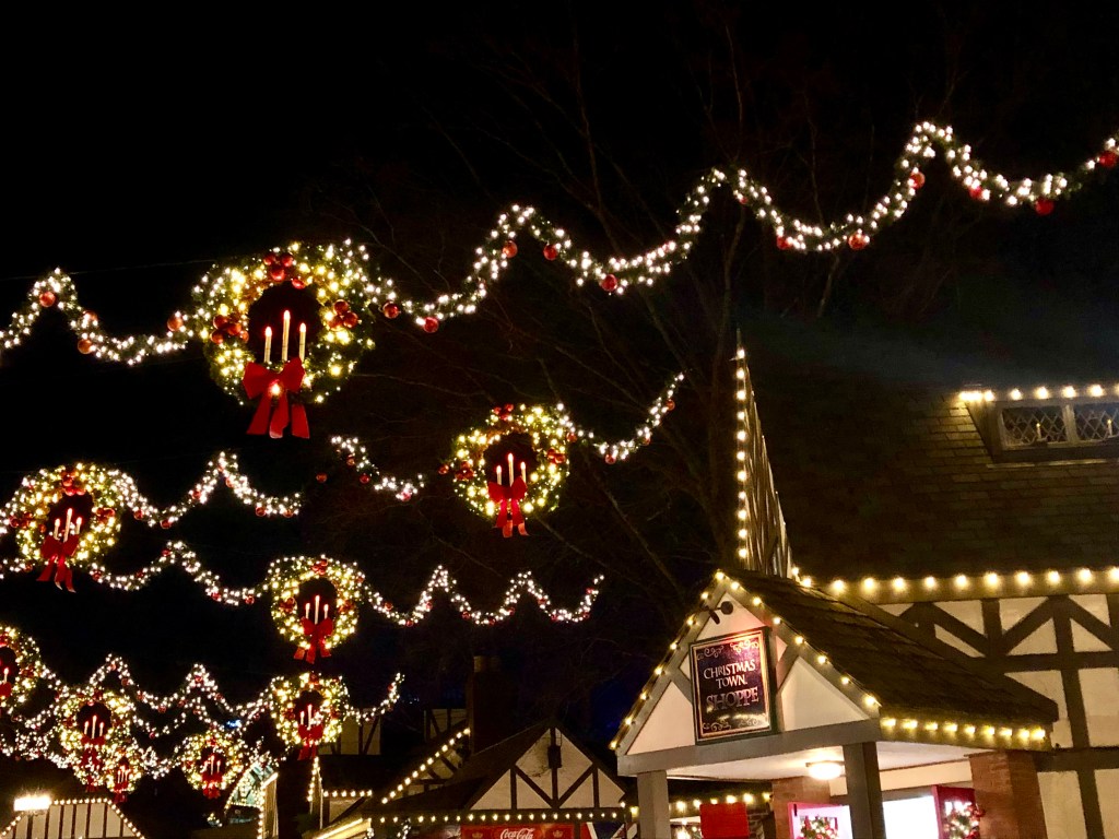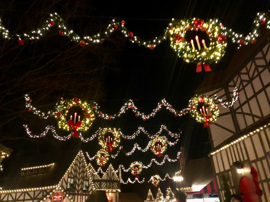 Now that we’ve done Colonial Williamsburg proud, well, all except for my encounter with the attorney, we headed to Busch Gardens Christmastown, land of over 10 million lights. Lots of walking and uneven terrain – they need to put oxygen tanks at the top of some of the hills! But definitely, the lights were something to see, especially in Christmastown. We also saw some pretty great live entertainment, for an amusement park. The lights going across the street in Christmastown remind me of going to my grandparents at Christmas. The streets of Canisteo, NY always had decorations spanning the street. The worst lights for me were the areas with blue lights. Having limited vision to begin with, these blue lights made it incredibly difficult to see people, strollers, wandering kids and the edges of the walkways.