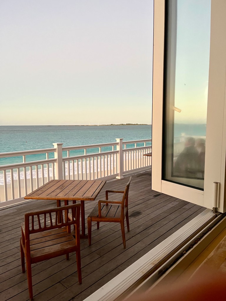 Our bar table overlooking the ocean at Ocean Club. This is my one picture taken from my seat. I like it!