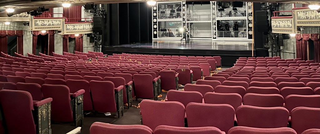 Because we left at o’dark-thirty, we were ready for a short nap before Karen met a friend from when they worked together in NYC. It was very nice seeing Lisa again and giving her a hug or two. Karen and Lisa went for a walk and a chat. Afterwards, Karen and I had Stage Door Deli for dinner. Excellent lean corned beef piled high on my Reuben and Karen had chicken parm. Then off to the show!