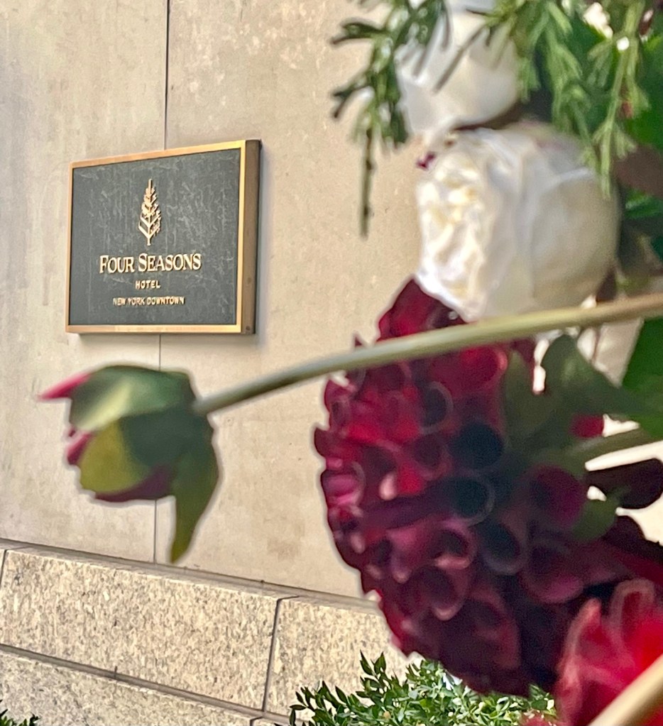 Karen did a great job navigating to NYC. Our first toursit sighting was the building where Ghostbusters was filmed – Hook and Ladder 8. We were pleased to learn that our room was ready and we were in a room with double beds. Four Seasons likes to put us in rooms with one king and a sofa bed. But, that’s not our preference. As Karen likes to say, “I love my mother but we don’t share a bed.”