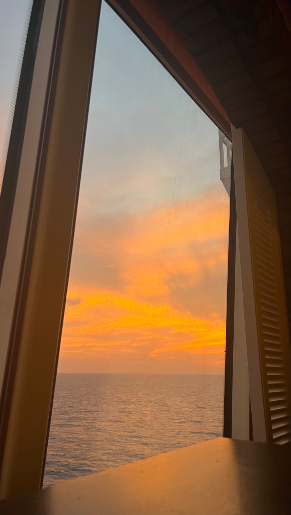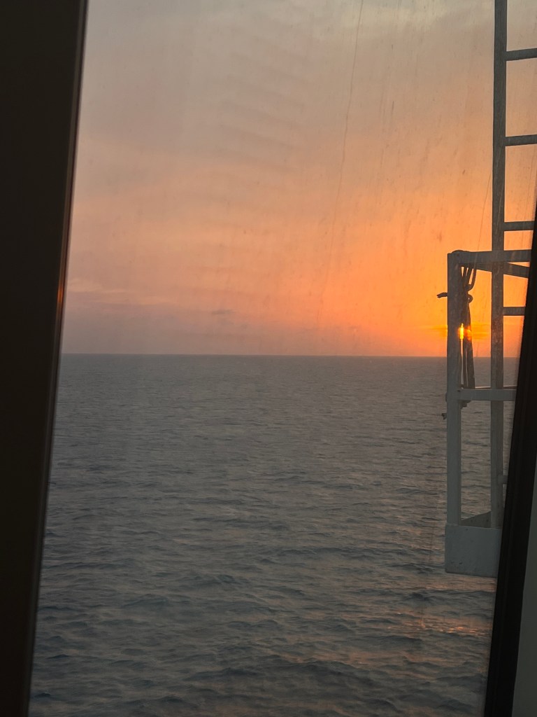 We definitely needed our sea day, even though we didn’t do much more than eat, nap and play Uno. The ocean was a bit choppy. It’s a new thing with me, I guess, but I’m succeptible to motion sickness.