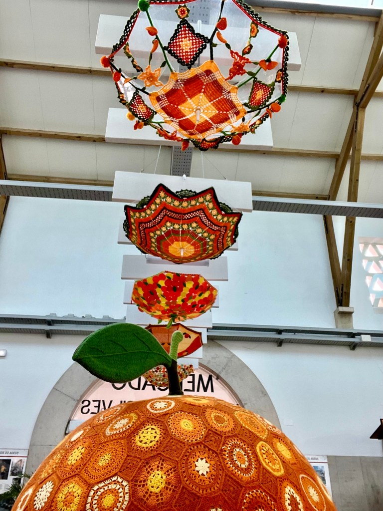 Day 2 – We took an excursion with the cruise line on a Panoramic Portimao tour. We visited the highest point in Portugal. The highlight of the trip was probably seeing an entire field of of storks sitting on their nests. The storks reside here year round. One of our stops was a quick visit to a market where these crocheted parasols were hanging from the ceiling over a huge crocheted pumpkin. I wasn’t doing so well with the bus motion, so did not get off at the last couple of stops. Karen did for photo opportunities. After returning to the ship, we had a disappointing dinner and service in the main dining room. Usually the Terrace Cafe has similar food, just a more casual atmosphere – even though they do put tablecloths on the tables for dinner service. Lots of motion on the ocean after leaving port. Yes, I’m still susceptible to motion sickness on bus, car or ocean ship. Thankful for the Bonine we bought before leaving home!