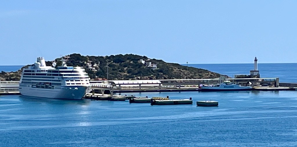 Another HoHo, another lighthouse! We were warned prior to this port of call about safety and food and water consumption. We had decided to get off the ship anyway and if we ever felt uncomfortable we would turn back to the ship. We spent our entire time in port…in Tangier. Seeing the sites, enjoying the people. Adding yet another memory. And another continent to my list of visits. There was a bit of a scary race to the ladies room…down a steep hill, at Caves of Hercules. And as we know, what goes down must also come back up! Karen had her work cut out for her for sure! Note: Rest stops are few and far between so either hold it or don’t drink too much! Winds and the rough seas welcomed us to Morcoco. (Thank you Bonine for getting us through a gnarly nights crossing). Other than the take-your-breath-away wind, Tangier was quite interesting and photogenic. Headed through the Straight of Gibraltar back to Spain, (though, fun fact, Melilla is still on the African coast).