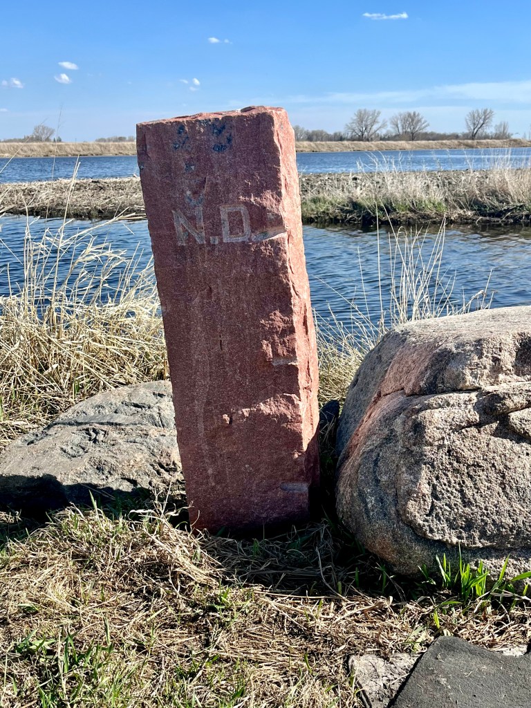 Tri-state marker for MN, SD, ND at the end of the dirt road near County Ditch #15