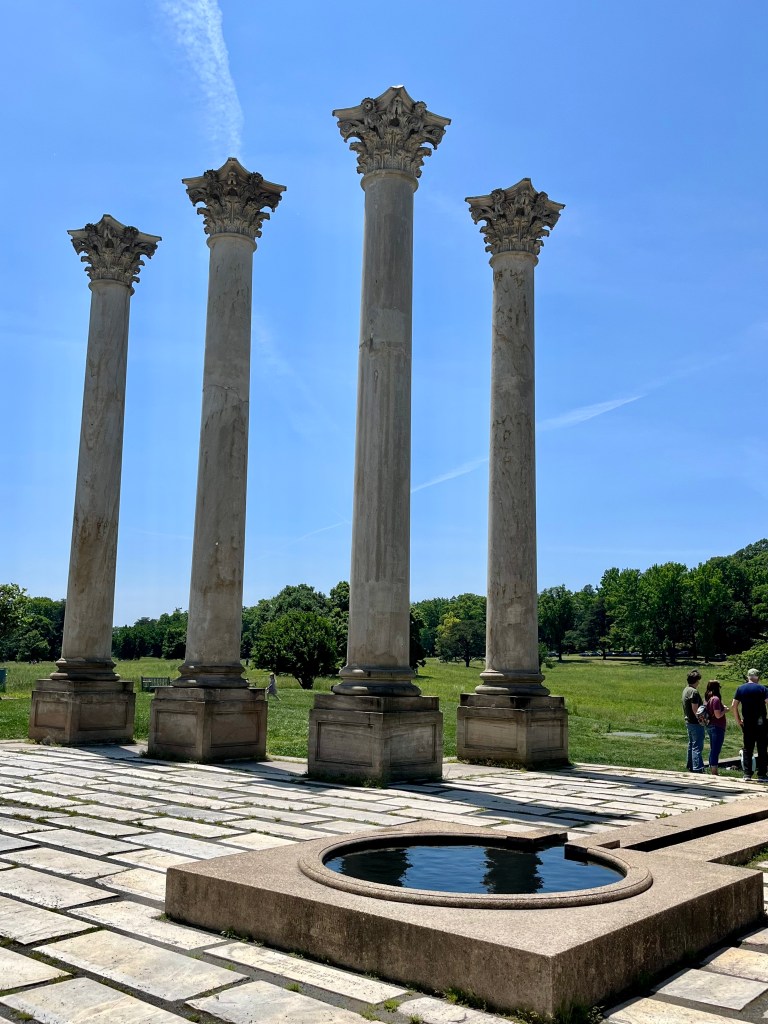 As many of you know, this is the second time we have lived in Arlington, Virginia. The first time we never got there, but this past Mother’s Day 2023, we finally made it to the National Capitol Columns! Honestly, not quite what I had envisioned for the surrounding area at the U.S. National Arboretum, but still interesting to see and read about the history. “The National Capitol Columns are a monument in Washington, D.C.’s National Arboretum. It is an arrangement of twenty-two Corinthian columns which were a part of the United States Capitol from 1828 to 1958, placed amid 20 acres of open meadow, known as the Ellipse Meadow.” Wikipedia