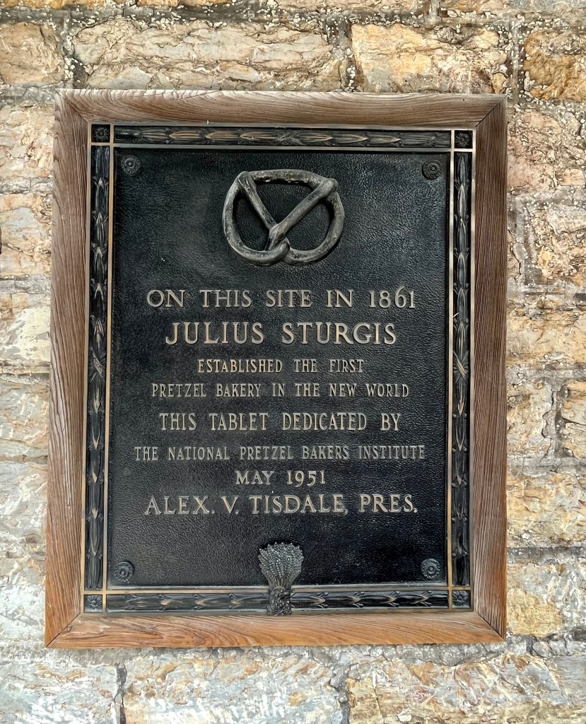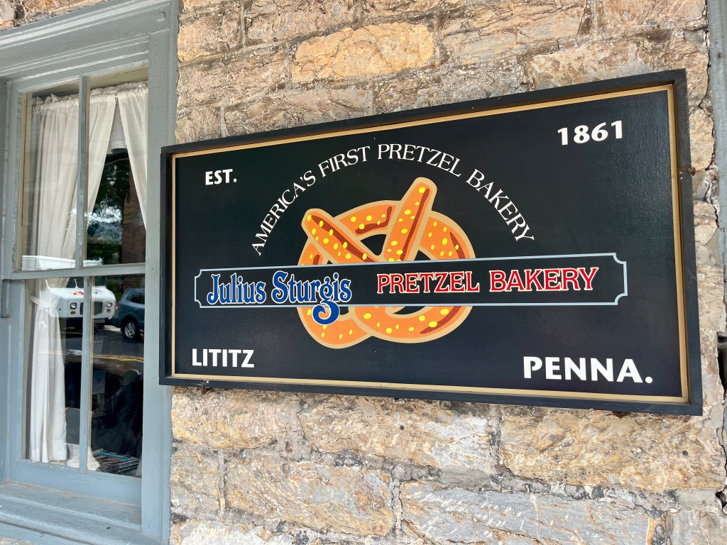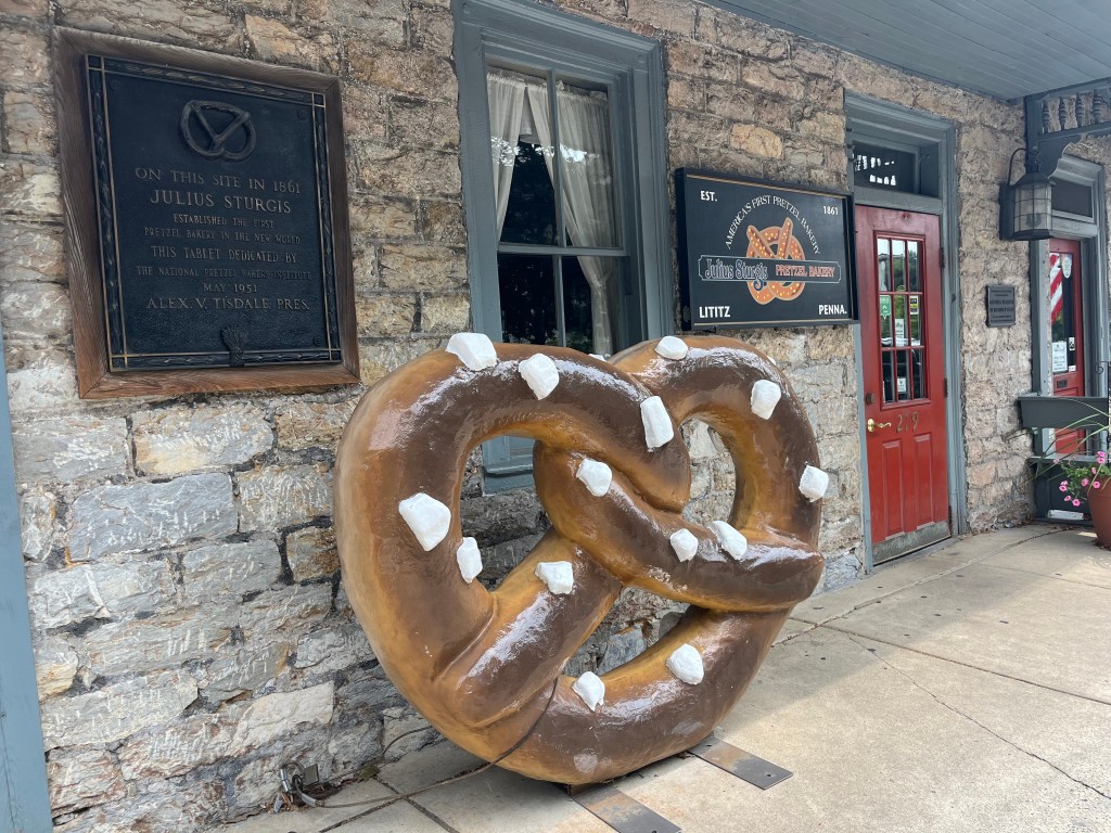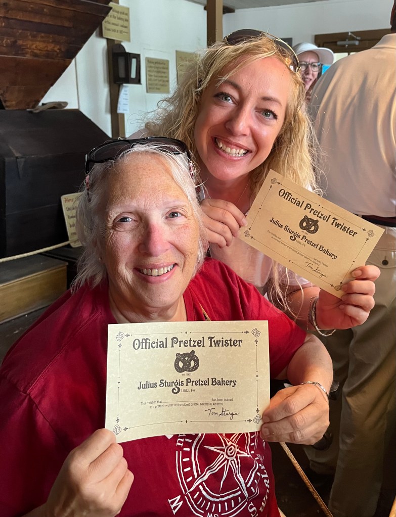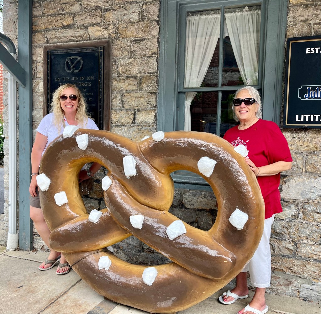 Thursday was all about our plans to revisit the Pennsylvania Dutch country areas. We headed to Litiz for our time entry into Sturgis Pretzel Factory – a place we visited many years ago when Karen was young. We learned, once again, about the origin of the pretzel, how to make the shape of the pretzel and how much we would have been paid to make the pretzel. It was a fun and interesting time. Afterwards, we headed into Amish country in search of farm stands, quilts, horse and buggies, and lunch. The back country roads were lined with very tall corn on both sides. We also passed a tobacco drying barn. We ate lunch while in the Bird-in-Hand area then headed up the road to Intercourse for some unique rolled ice cream. The day was fastly disappearing on us so we headed out in search of a few covered bridges. The bridges we visited were Bitzers Mill Bridge in Ephrata, Kurtz’s Mill Covered Bridge near Lancaster, Hunsiders Mill and Web’s ill Covered Bridge in LItiz. The craftsmanship boggles the mind!