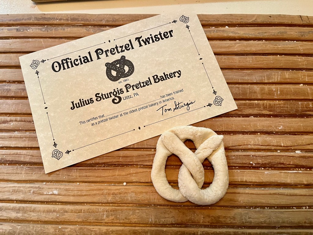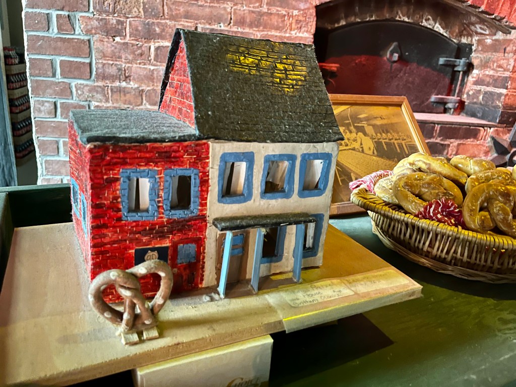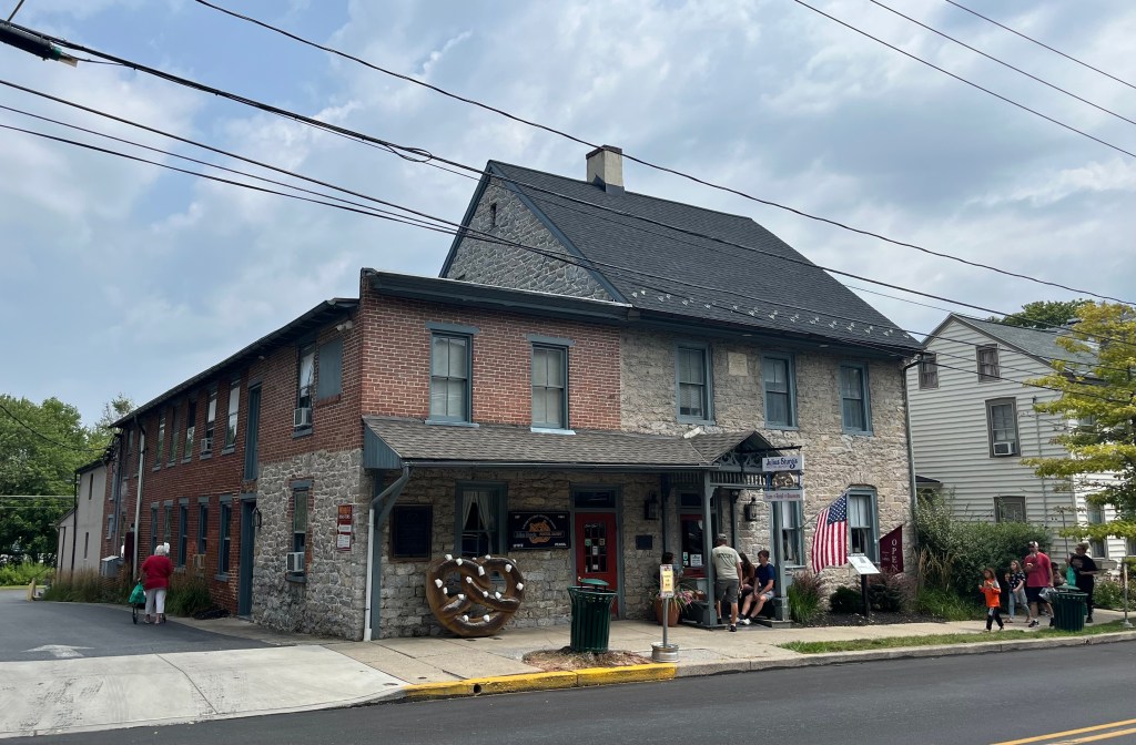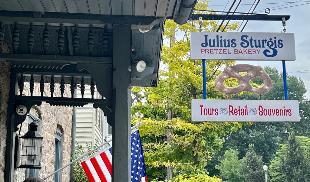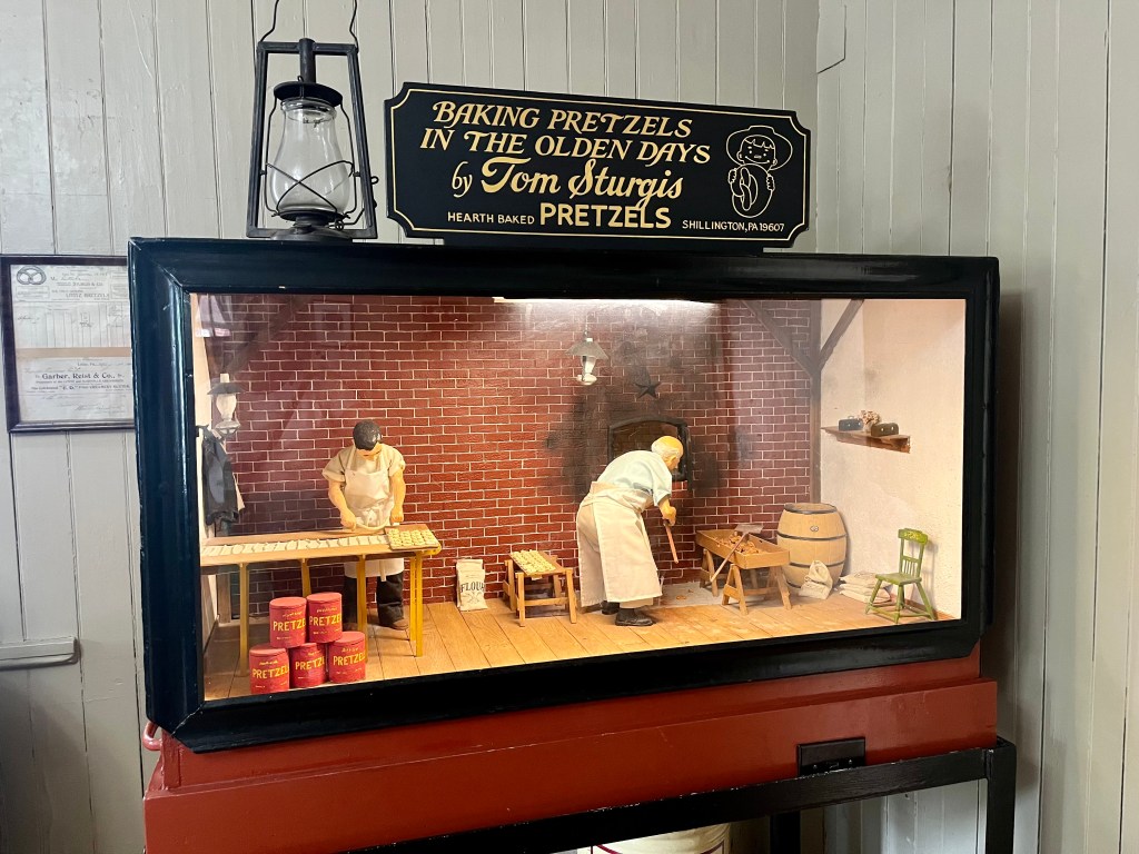 Thursday was all about our plans to revisit the Pennsylvania Dutch country areas. We headed to Litiz for our time entry into Sturgis Pretzel Factory – a place we visited many years ago when Karen was young. We learned, once again, about the origin of the pretzel, how to make the shape of the pretzel and how much we would have been paid to make the pretzel. It was a fun and interesting time. Afterwards, we headed into Amish country in search of farm stands, quilts, horse and buggies, and lunch. The back country roads were lined with very tall corn on both sides. We also passed a tobacco drying barn. We ate lunch while in the Bird-in-Hand area then headed up the road to Intercourse for some unique rolled ice cream. The day was fastly disappearing on us so we headed out in search of a few covered bridges. The bridges we visited were Bitzers Mill Bridge in Ephrata, Kurtz’s Mill Covered Bridge near Lancaster, Hunsiders Mill and Web’s ill Covered Bridge in LItiz. The craftsmanship boggles the mind!